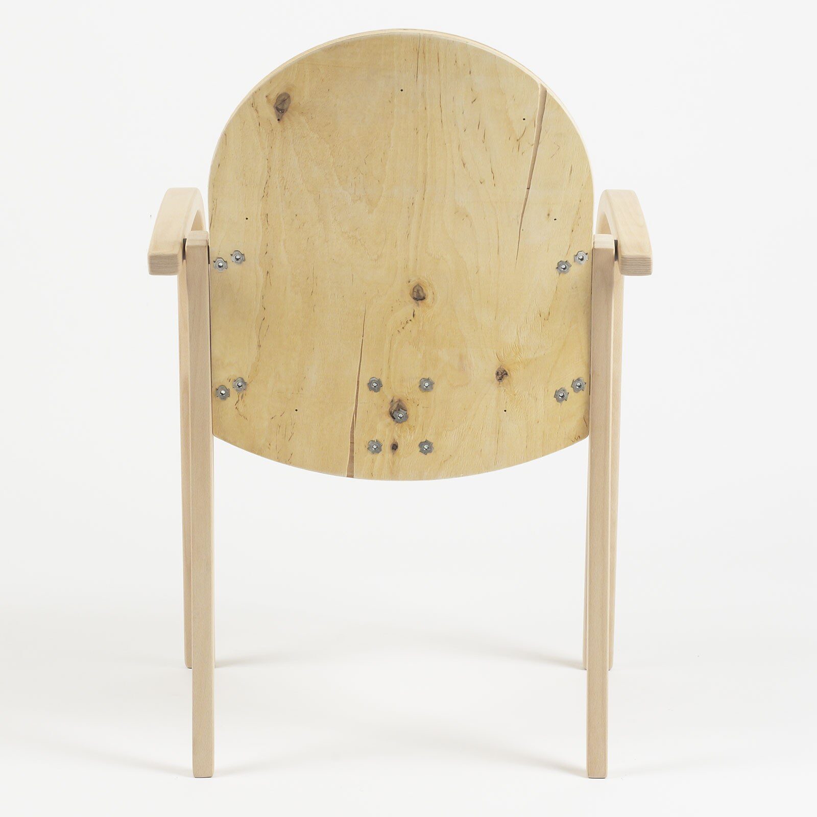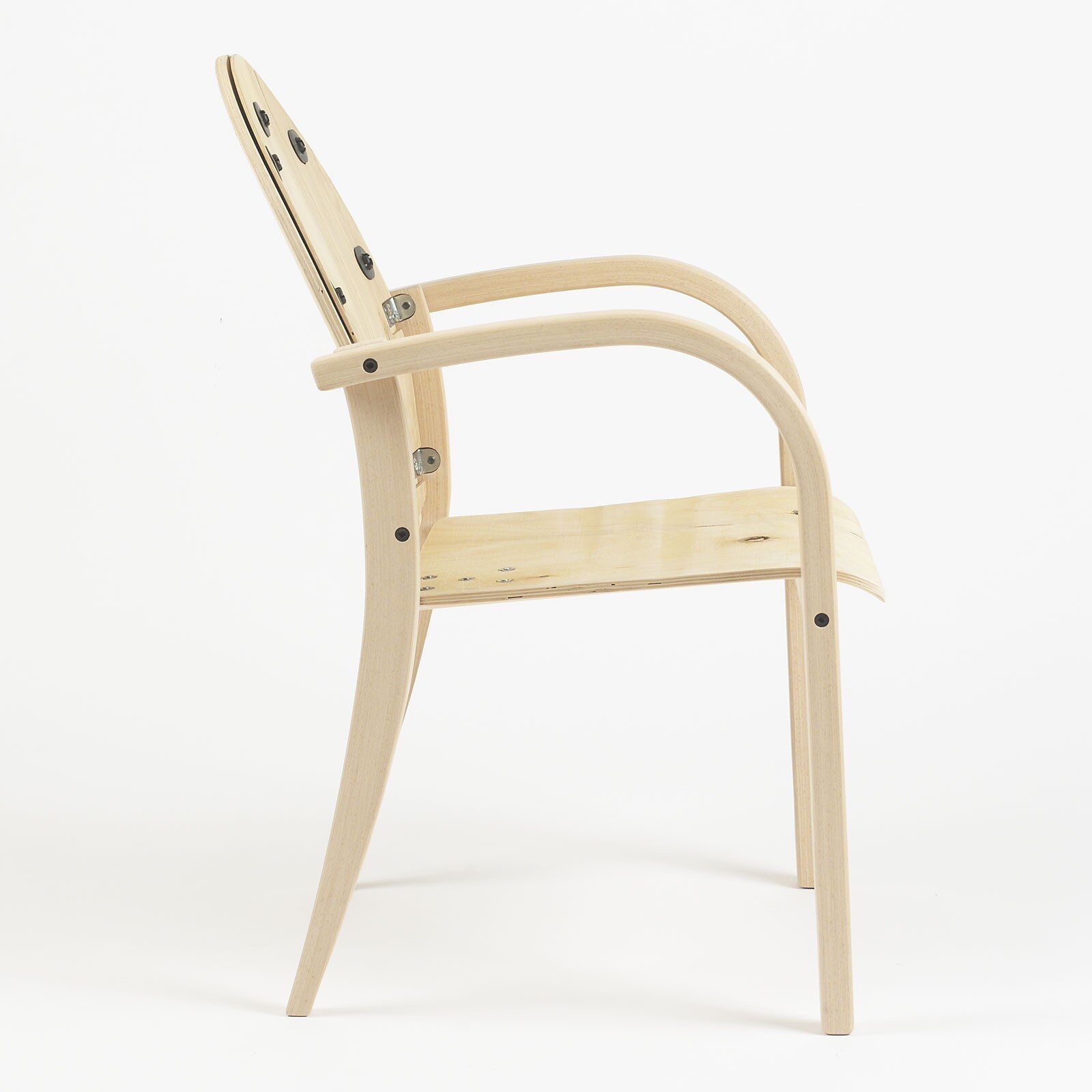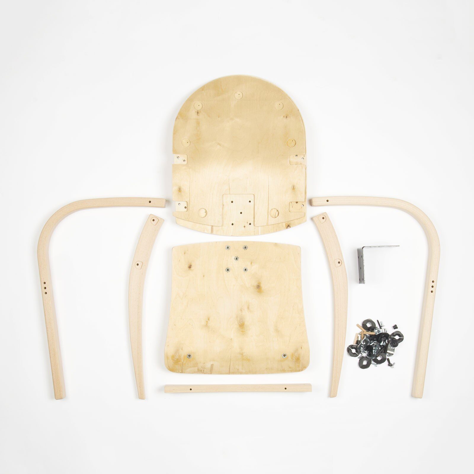 Rám kresla: Bukové lúpané dýhy dodávané buď brúsené, alebo lakované.