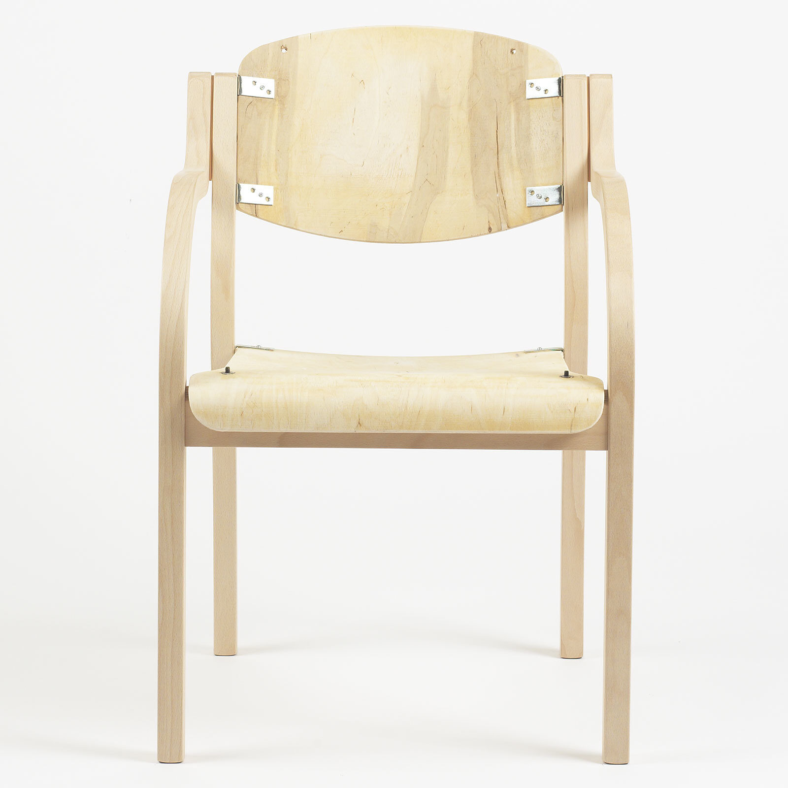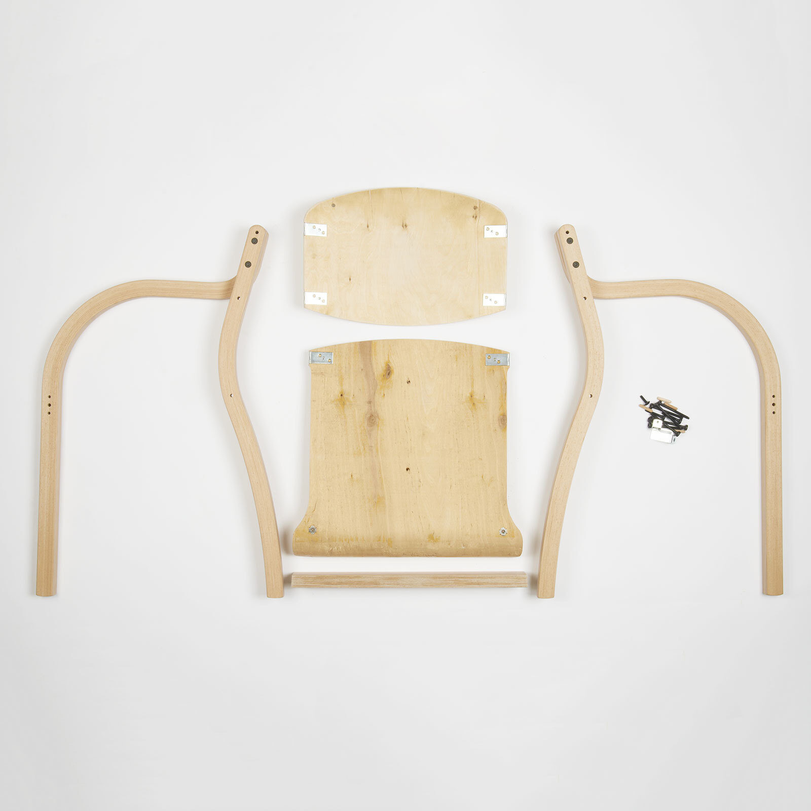 Rám kresla: Bukové lúpané dýhy dodávané buď brúsené alebo lakované.